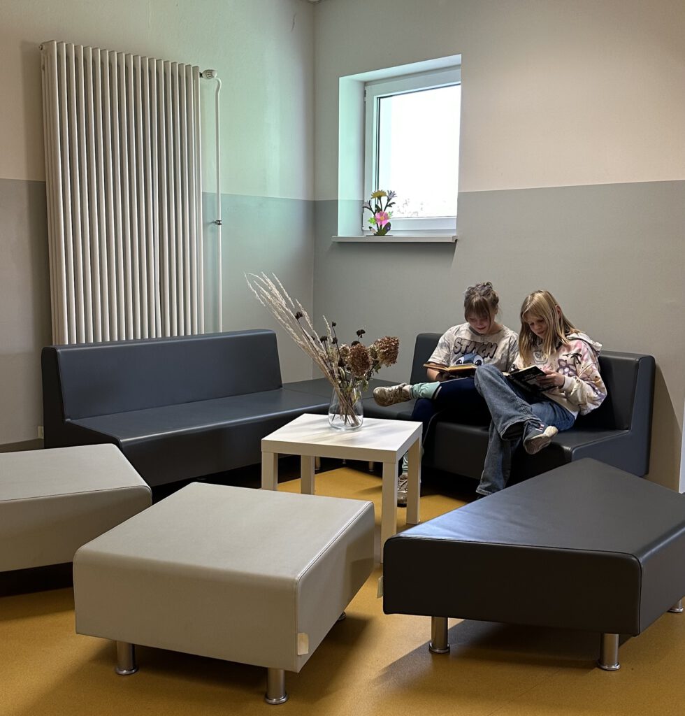Juli 2025 – Dank der großzügigen Unterstützung des Fördervereins der Astrid-Lindgren-Grundschule konnten wir eine neue, hochwertige Sitzgelegenheit in der Mitte unserer Etage anschaffen. Die gemütliche Sitznische lädt zum Verweilen, Lesen und Begegnen ein und wird bereits jetzt von vielen Kindern begeistert genutzt.