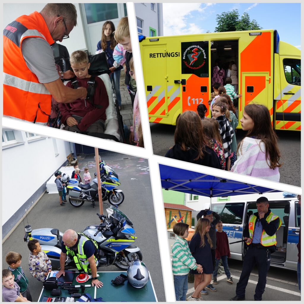 Jeden Tag bekamen die Schüler spannenden Besuch von unseren Helfern in der Not. So kam die Feuerwehr, der Krankenwagen der Johanniter und die Plauener Polizei. Die Kinder konnten dabei viel lernen, erleben und ausprobieren. Am Freitag gab es ein Wissensquiz um zu zeigen, wer die Woche besonders gut aufgepasst hat und nun ein Blaulichtexperte ist.