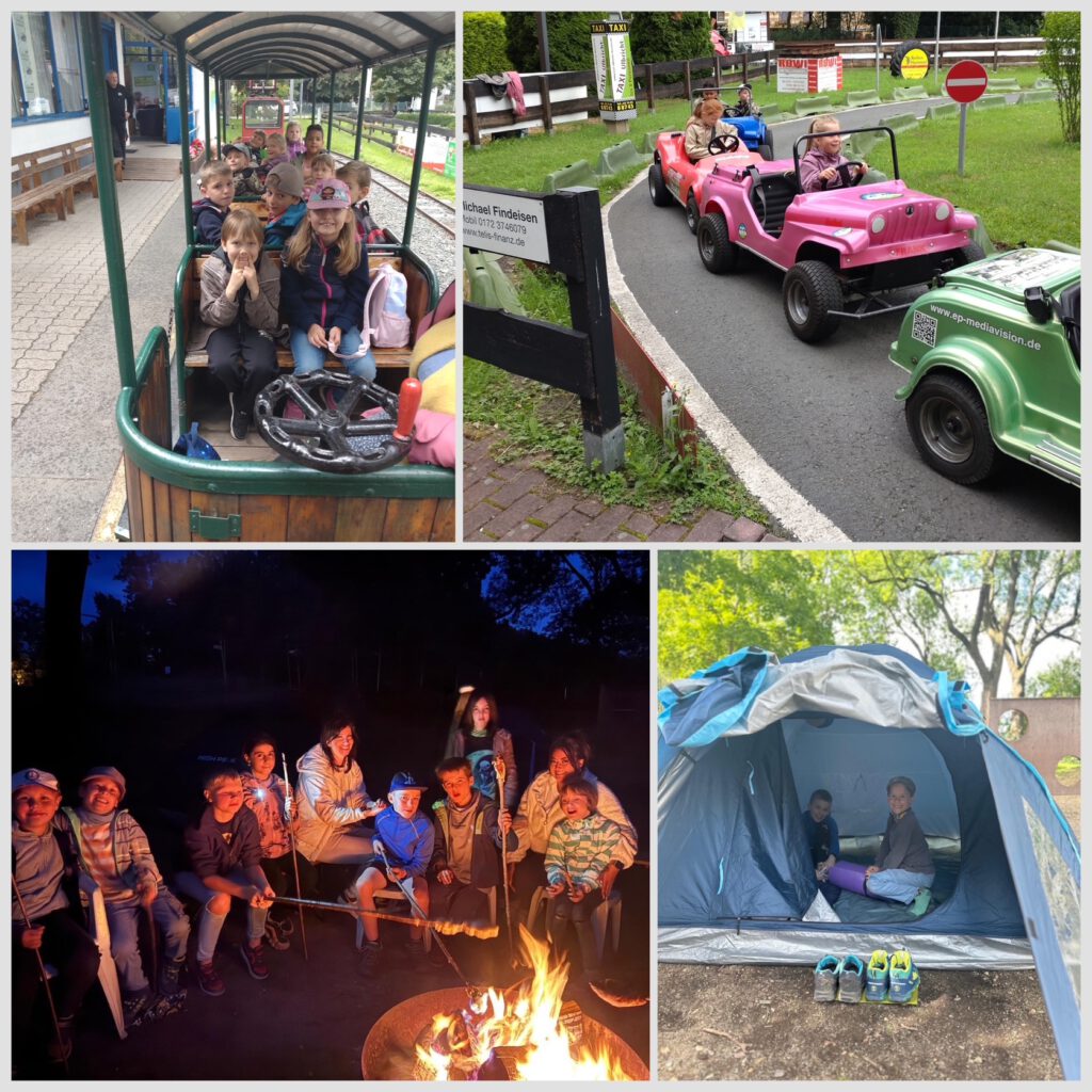 Anfang der Woche ging es zur Parkeisenbahn und ins Kino. Für die älteren Kinder stand diese Woche die traditionelle Ferienübernachtung im Zelt, mit gemeinsamem Kochen, Lagerfeuer, Stockbrot und Nachtwanderung auf dem Programm. Zum Abschluss gab es am Freitag für alle eine große Eisparty mit lustigen Spielen und Basteleien.