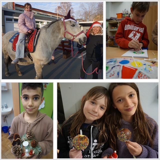 Am Mittwoch, den 3. Dezember 2025, verwandelte sich unser Hort von 14:00 bis 17:00 Uhr in ein kleines Winterwunderland. Der Markt lockte zahlreiche Besucher an, die sich von der festlichen Atmosphäre verzaubern ließen. Für das leibliche Wohl war bestens gesorgt. Überall duftete es nach Plätzchen und frischen Waffeln. Besonders beliebt waren auch die süßen Schokoäpfel und die gebrannten Mandeln. Die Kreativ-Ecke zog die Kinder magisch an. Dort wurde mit viel Eifer gebastelt, fantasievolle Weihnachtskarten und Wunschzettel erstellt, sowie kreativ mit Naturmaterialien gewerkelt. An den Ständen wurden fleißig selbstgemachte Kerzen und kleine Wichtelgeschenke verkauft, die regen Anklang fanden. Ein besonderes Highlight für die Kinder war das Ponyreiten auf dem Außengelände. Der Nachmittag fand seinen krönenden Abschluss um 16:30 Uhr mit einem besinnlichen Weihnachtskonzert der Hortkinder, das für Gänsehautmomente sorgte. Im Anschluss ließen die Besucher den gelungenen Tag bei angeregten Gesprächen und einem leckeren Rosterverkauf ausklingen.